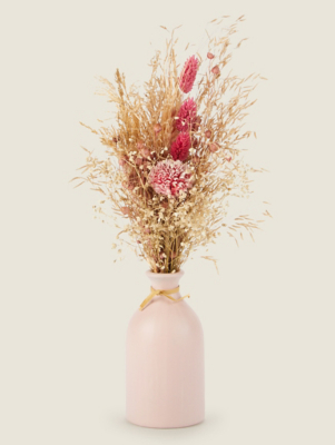 Pink Parisian Breakfast Dried Flowers in Vase Home at ASDA
